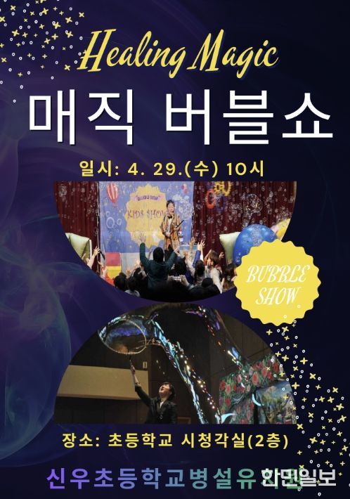 한민일보 서울포커스 유현민 기자 | 신우초등학교병설유치원은 4월 29일 교내 시청각실에서 ‘힐링 매직버블쇼’ 공연을 개최했다고 밝혔다. 이번 공연은 유아들이 직접 참여하며 즐길 수 있는 체험형 프로그램으로 마련됐다.