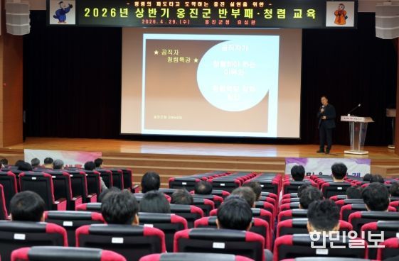 한민일보 서울포커스 김용택 기자 | 옹진군은 지난 29일 군청 효심관에서 전 직원을 대상으로 공직윤리 의식 고취를 위한 ‘2026년 상반기 공직자 반부패·청렴 교육’을 실시했다고 밝혔다.