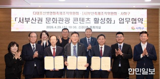 한민일보 서울포커스 임광현 기자 | 부산 사하구는 서부산권에서 개최되는 축제 및 문화 행사를 중심으로 지역 문화관광 콘텐츠의 발전 가능성을 함께 모색하고 지속가능한 협력 기반을 마련하기 위해 4월 29일 다대포선셋영화축제조직위원회, 부산축제조직위원회와 업무협약을 체결했다고 밝혔다.