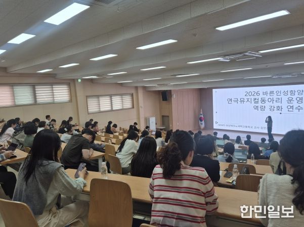 한민일보 서울포커스 임경복 기자 | 충남교육청은 29일, 충청남도교육청교육연수원(공주)에서 2026학년도 ‘바른 인성 함양 연극・뮤지컬 지도교사 배움자리’를 개최했다. 이날 행사는 도내 초중고 연극·뮤지컬 동아리 지도교사 80여 명을 비롯해 14개 교육지원청 담당 장학사, 충남교육연극협회 운영진 등 총 120여 명이 참석했다.