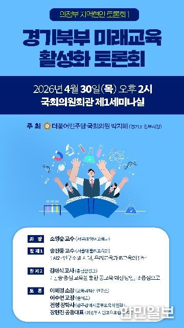 한민일보 서울포커스 임경복 기자 | 더불어민주당 박지혜 의원(의정부시갑)은 오는 30일 오후 2시, 국회의원회관 제1세미나실에서 '경기북부 미래교육 활성화 토론회'를 개최한다.