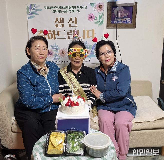 한민일보 서울포커스 김봉순 기자 | 서울 성북구 정릉4동 지역사회보장협의체가 4월 특화사업 ‘찾아가는 은빛 생신잔치’를 처음 추진하고 관내 독거어르신 가정을 방문해 생신을 축하했다.