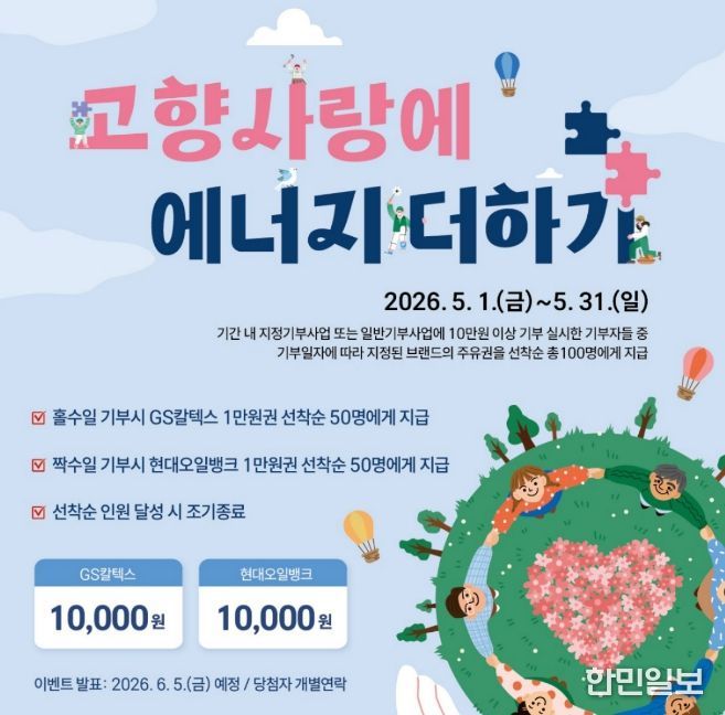 한민일보 서울포커스 임경복 기자 | 원주시는 고향사랑기부제 활성화를 위해 5월 한 달간 특별 이벤트 ‘고향사랑에 에너지 더하기’를 추진한다.