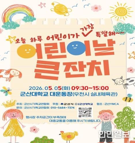 한민일보 서울포커스 김용택 기자 | 군산시는 5월 5일 어린이날을 맞아 지역 어린이와 가족들을 위한 다채로운 행사를 월명실내체육관과 군산대학교에서 동시에 개최한다.