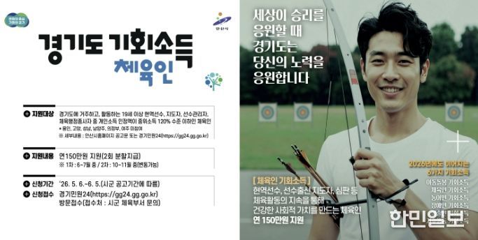 한민일보 서울포커스 임철현 기자 | 안산시는 체육인의 안정적인 활동 기반 조성을 위해 경기도와 함께 ‘체육인 기회소득’ 사업을 추진하고, 오는 5월 6일부터 6월 5일까지 한 달간 신청을 받는다고 30일 밝혔다.
