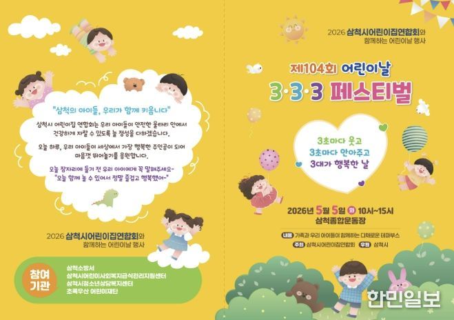 한민일보 서울포커스 임경복 기자 | 삼척시는 제104회 어린이날을 맞아 어린이와 가족이 함께 즐길 수 있는 행사들을 개최한다고 밝혔다.