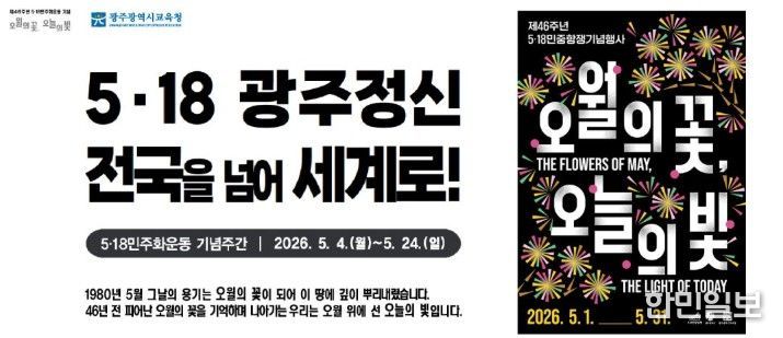 광주시교육청은 제46주년 5·18민주화운동을 맞아 오는 4일부터 24일까지 ‘5·18민주화운동 기념주간’을 운영한다.