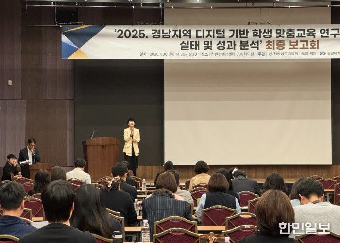 한민일보 서울포커스 임경복 기자 | 경상남도교육청은 30일 창원컨벤션센터(CECO)에서 AI·디지털 연구·선도학교 담당자 등 200여 명을 대상으로 ‘경남 지역 디지털 기반 학생 맞춤 교육 연구·선도학교 실태 및 성과 분석 최종 보고회’를 개최한다.