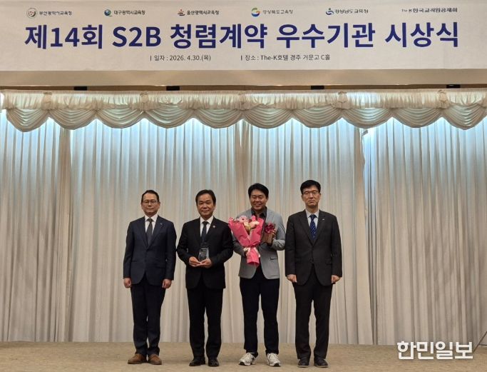 한민일보 서울포커스 임경복 기자 | 대구달성교육지원청은 한국교직원공제회가 주관하는 ‘제14회 S2B(학교장터) 청렴계약 우수기관’에 대구에서 유일하게 5년 연속 선정되어 30일 경주 The-K 호텔에서 열린 시상식에서 우수기관상을 수상한다.