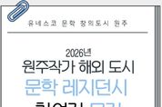 한민일보 서울포커스 임경복 기자 | 유네스코 문학 창의도시인 원주시는 지역 문학인의 창작활동 지원과 국제 교류 확대를 위해 ‘원주작가 해외 도시 문학 레지던시’ 참여 희망 작가를 4월 30일까지 모집한다. 이번 모집은 향후 해외 문학 도시와의 일대일 상호 교환 레지던시 추진에 대비해 참여 의사가 있는 원주 작가 인력풀을 구성하기 위한 것이다. 시는 지원서를 사전 제출한 작가를 우선 검토하고, 실제 교환 레지던시 추진 시 선발에 우대할 계획이다. 모집 대상은 시, 소설, 어린이 동화, 그림책 등 문학 분야 활동 작가로, 작품 활동 경력이 있으며 원주시 출신 또는 원주에 거주하거나 직장·작업실이 있는 자이다. 또한 해외 문학 도시 및 예술인과의 네트워킹에 관심이 있고, 문화 행사·교류·인터뷰·축제 등에 적극 참여할 수 있는 작가를 우대한다. 중급 이상의 외국어 의사소통 능력 보유자 및 출판 경력자는 가점 대상이다. 향후 레지던시 작가로 선발되는 경우 항공료가 지원되며, 초청 도시에서 숙박 시설이 제공된다. 레지던시 기간 중 창작된 작품은 원주시 유네스코 창의도시 홍보를 위해 전시·게재될 수 있으며, 번역본 제작 지
