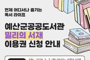 한민일보 서울포커스 임경복 기자 | 예산군 공공도서관은 지역주민의 디지털 독서 접근성을 높이고 생활 속 독서문화 확산을 위해 ‘구독형 전자책 지원 사업’을 운영한다. 최근 디지털 콘텐츠 이용이 늘면서 시간과 장소 제약 없이 독서를 즐길 수 있는 비대면 독서 서비스 수요가 증가하고 있으며, 이에 군은 전자책 이용 기회를 확대하고 함께 읽고 나누는 독서공동체 문화를 확산하기 위해 이번 사업을 마련했다. 사업은 3월부터 12월까지 운영되며, 군 공공도서관 정회원(도서관 카드 발급 회원)을 대상으로 구독형 전자책 서비스 이용권을 차수별로 배부한다. 이용자는 PC와 모바일 기기를 통해 최신 베스트셀러와 자기계발서, 아동·청소년 도서, 오디오북 등 다양한 콘텐츠를 언제 어디서나 이용할 수 있다. 이용권은 차수별 선착순 50명에게 배부하며, 1인당 1매로 3개월간 사용이 가능하다. 1차 접수는 3월 3일 오전 9시부터 시작하며 도서관 누리집 행사참가신청 메뉴에서 신청하면 된다. 군 관계자는 “구독형 전자책 서비스를 통해 주민 누구나 부담 없이 독서를 접하는 계기가 되길 바란다”며 “앞으