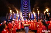 한민일보 서울포커스 김은금 기자 | 창녕군은 17일, 군청 광장에서 ‘제65회 경상남도민체육대회’의 성공을 기원하는 성화 맞이 및 봉송 출발 행사를 개최하며 축제의 서막을 올렸다. 이날 행사에는 심상철 군수 권한대행과 홍성두 군의회 의장을 비롯해, 도·군의원, 군 체육회장, 성화 주자 및 지역 주민 등 200여 명이 참석해 도민체전의 시작을 알리는 ‘화합의 불꽃’을 함께 맞이했다. 특히 창녕읍 풍물패의 신명 나는 풍물놀이와 팝페라 공연으로 분위기를 고조시켰으며, 김해 구지봉에서 채화된 성화가 군청 광장에 도착하자 참석자들은 뜨거운 환호와 박수로 성화를 반겼다. 성화는 창녕읍을 시작으로 14개 읍·면 전역을 순회하며, 각 읍·면별 7명씩, 총 98명의 주자가 지역 곳곳에 희망과 화합의 메시지를 전달한 뒤, 개회식이 열리는 함안군 공설운동장으로 향했다. 심상철 권한대행은 “성화 봉송에 함께해 주신 주자들과 군민 여러분께 진심으로 감사드리며, 98명의 주자 모두가 안전하게 봉송을 마치고, 이번 도민체전이 330만 도민이 하나로 뭉치는 화합의 장이 되기를 바란다”고 말했다. 한편, 경남