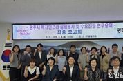 한민일보 서울포커스 곽중희 기자 | 광주시는 지난 9일 시청 이음홀에서 사회복지단체·시설장 및 관계 공무원 등 20여 명이 참석한 가운데 ‘2025년 광주시 복지인프라 실태 조사 및 수요 진단 연구용역’ 최종 보고회를 개최했다. 이번 연구용역은 지난 3월부터 9월까지 6개월간 추진된 사업으로 광주시 복지 기반시설 전반에 대한 실태 조사와 수요 진단을 통해 향후 복지 기반시설 확충 방향을 제시하는 것을 목표로 했다. 특히, 지난 7월 중간 보고회에서 제시된 의견을 반영해 수요 대비 공급 현황과 권역별 분석을 실시하고 복지 기반시설 확충 전략을 도출했다. 보고 결과에 따르면 광주시의 복지 기반시설 현황을 도내 31개 시군과 비교했을 때, 현재 계획 중인 시설을 제외하고 우선적으로 종합복지관의 설치가 필요하다는 분석이 제시됐다. 설치 대상 지역으로는 남서부권역과 남동부권역이 우선 검토돼야 한다는 의견도 함께 나왔다. 시 관계자는 “이번 연구를 통해 광주시 복지 기반시설 현황을 자세히 파악할 수 있었다”며 “연구 결과를 적극 반영해 시민들에게 보다 나은 복지서비스를 제공할 수 있도록 복지 기반시설 확충에