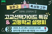 한민일보 서울포커스 곽중희 기자 | 동작구가 오는 27일 오후 1시 15분부터 구청 신청사 4층 대강당과 소회의실에서 ‘고교 선택 가이드 특강 및 고등학교 설명회’를 개최한다고 밝혔다. 이번 행사는 중학생과 학부모가 고등학교 진학을 준비하며 겪는 고민을 덜고, 학교별 특성과 맞춤형 정보를 제공하기 위해 마련됐다. 먼저 메인 프로그램인 ‘고교 선택 가이드 특강’은 오후 2시부터 대강당에서 펼쳐진다. EBS 입시 전문 강사인 정제원 숭의여고 교사가 강연자로 나서 대입전형 변화에 따른 일반고와 특성화고 진학 전략을 상세히 안내한다. 아울러 ‘고교 설명회’에는 관내 7개교와 관악구 2개교가 참여하며, 학교별 담당 교사가 직접 특화 프로그램과 진학 사례 등을 소개하고 학부모와 학생들의 궁금증을 해소한다. ▲1회차(13:15~13:50) ‘서울공고, 당곡고’ ▲2회차(15:40~16:15) ‘경문고, 숭의여고’ ▲3회차(16:20~16:55) ‘영등포고, 수도여고’ ▲4회차(17:00~17:35) ‘성남고, 서울문영여고’ 순으로 열린다. 특히, 오후 3시 10분에는 내년 3월 개교를