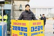 한민일보 서울포커스 곽중희 기자 | 강원특별자치도의회 문관현 기획행정위원장은 27일 여의도 국회 앞에서 ‘강원특별법 3차 개정안’의 조속한 처리를 촉구하며 릴레이 1인 시위에 나섰다. 개정안 통과를 위해 누구보다 앞장서 온 강원특별자치도의회의 상임위원장이 도민을 대신해 국회 앞에서 직접 행동에 나섰다는 점에서 큰 의미를 갖는다. 문 위원장은 국회 정문 앞에서 피켓을 들고 “강원특별법 3차 개정안은 강원의 미래를 여는 열쇠이자 300만 도민의 절박한 요구”라며,“도민의 명령을 받드는 도의회가 더는 침묵할 수 없다. 국회는 즉각 심사에 착수해야 한다”고 강하게 외쳤다. 그는 올해 내내 강원특별법 개정을 위해 중앙부처·국회·전문가 그룹과의 논의를 직접 챙기며 ‘책상에서만 말하는 정치가 아닌, 현장에서 답을 찾는 정치’를 강조해 왔다. 이번 1인 시위 역시 이러한 실천적 리더십의 연장선으로, 지역의 핵심 현안을 단순히 주장하는 데 그치지 않고 ‘몸으로 밀어붙이는 추진력’을 보여준 셈이다. 특히 “강원특별자치도가 실질적인 권한을 갖고 미래 전략을 스스로 주도하기 위해서는 3차 개정이 필수”라며,