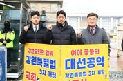 한민일보 서울포커스 곽중희 기자 | 강원특별자치도의회 기획행정위원회는 11월 27일 여의도 국회 앞에서 강원특별자치도 설치 및 미래산업글로벌도시 조성을 위한 특별법(강원특별법) 3차 개정안의 조속한 처리를 촉구하는 릴레이 1인 시위를 이어갔다. 기획행정위원회는 이날 시위를 통해 강원특별법 3차 개정안이 지역 발전의 제도적 기반이자 도민의 오랜 염원을 담은 법안임을 강조하며, 국회가 조속히 심사에 착수해 실질적인 논의가 이뤄질 것을 촉구했다. 문관현 위원장은 “강원특별법 개정은 지역의 미래와 직결된 300만 도민의 절실한 요구”라며 “국회가 도민의 기대에 부응해 책임 있는 자세로 조속히 논의를 마무리해야 한다”고 말했다. 한편, 기획행정위원회는 강원특별법 3차 개정안이 정기국회 기간 내 처리될 수 있도록 관계 부서와 긴밀히 협력하고, 법안 통과를 위해 현실적인 방안을 지속적으로 모색해 나갈 계획이다.