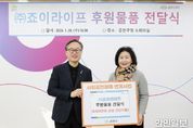 한민일보 서울포커스 곽중희 기자 | 금천구는 ㈜죠이라이프가 지역 내 취약계층에게 4,000만 원 상당 건강식품을 후원했다고 밝혔다. 이와 관련 지난 20일 오전 금천구청 소회의실에서 후원물품 전달식이 진행됐다. 전달식에서는 유성훈 금천구청장과 정난희 ㈜죠이라이프 대표가 참석해 관내 취약계층 지원에 뜻을 모았다. 후원받은 건강식품은 일상적인 건강 관리에 어려움을 겪는 주민들의 건강한 생활 유지를 돕기 위해 관내 취약계층에게 전달될 예정이라고 구는 설명했다. ㈜죠이라이프는 금천구 관내에 위치한 화장품, 건강식품 전문 생산 기업이다. 특히 장애인 고용에 선도적인 역할을 하고 있는 장애인기업으로 사회적 가치 실현에 앞장서고 있다. 지난해에는 개청 30주년을 기념해 관내 취약계층에게 먹거리‧생활용품을 지원한 ‘훈훈한 별천지 겨울마켓’에 참여해 400만 원을 후원했다. 이어 올해에도 지역사회에 나눔을 이어가고 있다. 정난희 ㈜죠이라이프 대표는 “도움이 필요한 이웃들이 건강에 대한 부담을 덜고 일상을 이어가는 데 보탬이 되길 바란다”라고 전했다. 유성훈 금천구청장은 “따뜻한 마음을 전해