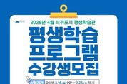 한민일보 서울포커스 김다남 기자 | 서귀포시는 시민의 다양한 배움의 기회를 제공하기 위해 2026년 4월 개강 서귀포시 평생학습관 프로그램 수강생을 모집한다고 밝혔다. 이번 교육과정은 직업능력, 인문교양, 문화예술 등 3개 분야, 15개 강좌, 총 235명의 수강생을 모집하여 운영할 예정이다. 수강신청은 16일 오전 9시부터 25일 오후 6시까지 서귀포시 평생학습관 홈페이지에서 온라인을 통한 선착순 접수로 진행되며, 정원 미달 강좌는 26일부터 27일까지 이틀간 추가접수를 받는다. 모집 대상은 만 19세 이상 서귀포시민이며, 서귀포시민을 우선으로 선발하고 타지역 거주자는 후순위로 선정된다. 특히, 지역청년의 성장을 지원하기 위해 직업능력 분야 2개 과정은 청년층(만19세~39세)를 우선 선발(정원의 30%)하여 운영한다. 서귀포시 관계자는 “평생학습관에서는 자격증 취득과정 운영뿐만 아니라, 직장인과 시민들의 학습 접근성을 높이기 위해 주말 및 야간 프로그램을 확대하여 시민들의 평생학습 참여 기회를 넓히고자 노력하고 있다”라고 말했다.