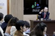 한민일보 서울포커스 김다남 기자 | 충청북도진천교육지원청은 9일, 진천교육지원청 온누리홀에서 윤건영 충청북도교육감과 진천교육지원청 7∼9급 일반직 공무원 20여 명이 참석한 가운데 2026년 주요업무 보고 및 MZ세대 공감 소통 간담회를 개최했다고 밝혔다. 이번 행사는 올해 충북교육의 핵심 가치인 ‘실용’과 ‘포용’을 현장에서 구체적으로 구현하기 위해 마련됐으며, “교육감과 MZ세대, 진솔톡톡(진천교육지원청 솔직 토크토크)”이라는 주제로 진행됐다. 2026년 진천교육지원청 주요업무 보고에 이어 진행된 이번 세션은, 저연차 공무원들이 던지는 가감 없는 질문에 교육감이 즉석에서 답하는 ‘쌍방향 소통’ 방식으로 운영되어 큰 호응을 얻었다. 소통 간담회 현장은 MZ세대 주무관들이 현장에서 느낀 생생한 경험과 아이디어를 쏟아내며 활기찬 토론의 장으로 변모했다. 참석자들은 교육 정책에 대한 질문으로 교육감과의 심리적 거리를 좁히는 한편, 현장의 변화를 이끌 실질적인 개선책을 제안하며 목소리를 높였다. 특히, 충북교육의 6대 핵심 정책을 각자의 일상과 연결해 공유하는 사전 세션을 통해, 정책이 먼 이야기가 아닌 우리 모두의 고민임을 확