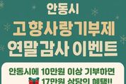 한민일보 서울포커스 김봉순 기자 | 안동시는 연말정산 시즌을 맞아, 고향사랑기부제 참여자에게 감사의 뜻을 전하고 기부 문화를 확산하기 위해 12월 22일(월)까지 ‘안동시 고향사랑기부제 연말 감사 이벤트’를 진행한다고 밝혔다. 고향사랑기부제는 10만 원 기부 시 3만 원 상당의 답례품과 세액공제 혜택(10만 원까지 전액, 초과분 16.5%)을 받을 수 있는 제도다. 안동시는 여기에 더해, 연말 감사 이벤트 기간(12월 22일까지) 기부자 중 추첨을 통해 30명에게 안동 백진주 쌀 10kg을 추가로 증정할 예정이며, 당첨자는 12월 23일 문자로 개별 안내된다. 참여는 고향사랑e음 누리집 또는 농협은행 오프라인 창구를 통해 가능하다. 안동시는 이번 이벤트가 고향사랑기부제 참여 문화를 확산하고 지역경제 활성화와 기부자 만족도를 높이는 계기가 될 것으로 기대하고 있다. 특히 연말정산에 대한 관심이 높아지는 시기에 기부 혜택과 지역 특산품 선물을 동시에 받을 수 있어 참여가 한층 확대될 것으로 보인다. 안동시 관계자는 “올 한 해 안동을 응원해주신 모든 기부자께 깊이 감사드린다”며 “기부금은 시민의 삶의 질 향상과 지
