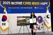 한민일보 서울포커스 김서윤 기자 | 남해군 회룡농촌체험휴양마을 김미정 사무장이 ‘2025 농산어촌 디자인 공모전’에서 농어업·농어촌특별위원장 표창을 수상하며 지역의 명예를 드높였다. 지난 26일 서울 aT센터에서 열린 시상식에서 김 사무장은 ‘서면 북부지역 다랑논 일대’를 주제로 한 작품으로 입상했다. 해당 공모전은 대통령 직속 농어업·농어촌특별위원회가 주최하는 행사로, 전국 지자체 및 관련 기관, 지역 주민들이 참여해 조경·건축·도시계획 등 다양한 분야에서 경쟁을 펼쳤다. 김 사무장의 작품은 남해 다랑논의 전통 경관과 농촌의 정취를 섬세하게 담아내며, 자연과 공동체가 조화롭게 어우러진 지속가능한 농촌 디자인의 모범 사례로 높은 평가를 받았다. 심사위원단은 지속가능성, 지역성, 심미성 등을 기준으로 10개 마을을 최종 선정했다. 김미정 사무장은 “지역의 자연과 사람을 존중하는 디자인이야말로 농촌의 미래를 밝히는 길이라 믿는다”며 “이번 수상은 회룡마을 주민 모두의 노력에 대한 보답”이라고 소감을 밝혔다. 2020년부터 회룡마을을 이끌어온 김 사무장은 서면 다랑논 마라톤대회 개최 등 참신한 아이디어로 공동체 활성