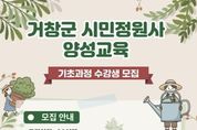 한민일보 서울포커스 김서윤 기자 | 거창군은 정원 전문 지식을 갖춘 시민정원사를 양성하고, 체계적인 정원관리 봉사활동을 활성화해 지역 정원문화 확산과 관련 산업 육성에 도모하기 위해 ‘시민정원사 양성교육 기초과정’ 수강생을 모집한다. 이번 기초과정은 정원에 관심 있는 거창군민이며 누구나 신청 가능하며, 모집인원은 20명 내외이다. 접수는 오는 25일부터 27일까지며, 거창창포원 운영 담당 방문 또는 우편으로 신청할 수 있다. 이번 교육은 3월 20일부터 7월 10일까지 매주 금요일 12시부터 18시까지 거창창포원 다목적실에서 진행될 예정이다. 교육과정은 이론 39시간, 실습 49시간으로 구성되며, 정원식물 이해, 정원식물 관리, 정원조성 방법 등 실무 중심 강의와 현장실습도 포함된다. 교육을 수료한 시민정원사는 향후 거창군 내 다양한 정원봉사 활동과 심화교육 참여 기회도 제공받게 된다. 신동일 환경과장은 “시민정원사 양성교육을 통해 주민들의 정원 전문성을 높이고 지역 정원문화 확산에 기여하길 기대한다”며 “정원에 관심 있는 군민들의 많은 참여를 바란다”고 말했다.