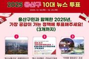 한민일보 서울포커스 김서윤 기자 | 서울 용산구가 구민이 직접 올해 가장 의미 있었던 정책을 선정하는 ‘2025 용산구 10대 뉴스’ 온라인 투표를 진행한다. 주민 투표를 통해 정책 성과를 돌아보고, 구정에 대한 관심과 공감을 높이겠다는 취지다. 이번 투표에는 총 25개 주요 정책 사업이 후보로 올랐다. 참여 주민은 이 가운데 3개 사업을 선택하면 되며, 득표수를 합산해 상위 10개 사업을 ‘2025 용산구 10대 뉴스’로 최종 선정한다. 투표 결과는 12월 29일 용산구 누리집을 통해 발표될 예정이다. 후보 정책에는 용산의 중·장기 미래 경쟁력을 좌우할 대형 사업부터 주민 일상과 밀접한 생활 정책까지 폭넓게 포함됐다. 용산국제업무지구 도시개발사업인 ‘용산서울코어’와 전자상가 일대를 AI·ICT 콘텐츠 중심의 신산업 거점으로 육성하는 ‘용산 코어밸리’가 대표적이다. 이태원전망대에서 녹사평광장, 구청사 힐링정원으로 이어지는 ‘이태원 힐링로드’ 조성 사업 역시 도심 속 휴식 공간을 조성하는 주요 정책으로 포함됐다. 경제·교육 분야에서는 △취업박람회 기술인력 양성 등 청년·중장년 취·창업 지원 확대 △골목상권 공동체