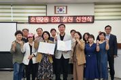 한민일보 서울포커스 김순철 기자 | 의정부시 호원2동행정복지센터(권역국장 강경숙)는 4월 29일 호원2동 지역사회복지협의체(위원장 조정환)와 함께 사회적 책임 강화와 지속가능한 활동 확산을 위해 ‘ESG 실천 선언식’을 개최했다. ESG란 기업의 지속가능성을 평가하는 비재무적 지표로 환경(Environment), 사회(Social), 지배구조(Governance)의 약어다. 민간 사회복지 현장에서 코로나19 이후 급변하는 사회환경과 문제에 적시성있게 대응하기 위해 새로운 조직운영 모델로 도입해 활용하고 있다. 호원2동 지역사회보장협의체 공동위원장(김순주 복지지원과장)과 민간위원장(조정환 위원장)이 ESG 실천 선언문을 통해 ▲친환경 가치 실현을 위한 민관협력 사업의 지속 추진 ▲어려운 이웃을 위한 지역사회 공헌활동 솔선수범 참여 ▲자유롭고 공정한 의사결정 과정 참여로 폭넓게 소통하는 단체 운영을 선언하며 ESG 실천 의지를 다졌다. 김순주 복지지원과장은 “ESG 실천을 통해 주민이 행복할 수 있는 지속가능한 복지서비스를 제공해 나가겠다”고 말했다.