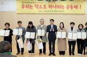 한민일보 서울포커스 김용택 기자 | 책의 도시 전주의 다양한 독서문화 공동체들이 한자리에 모여 지난 1년 동안의 활동 성과를 공유했다. 전주시는 8일 전주시립도서관 꽃심에서 한 해 동안의 도서관 운영 성과를 돌아보는 독서문화공동체 한마당 행사인 ‘도서관의 날’을 개최했다. 이번 행사는 독서문화의 가치를 공유하고 함께 성장하는 지역공동체의 성과를 되돌아보고, 도서관 유관 단체와 직원 간의 소통·화합을 강화하기 위해 마련됐다. 총 150여 명의 독서문화 공동체 구성원들이 참석한 이날 행사는 △도서관 발전 유공자 포상 △운영성과 발표 △우수 활동 사례 공유 △공연 등으로 꾸며졌다. 먼저 시는 올해 도서관의 운영 및 서비스 향상과 지역 독서문화 활성화, 협력 네트워크 구축 등에 기여한 개인(10명) 및 단체(1개)에 전주시장 표창을 수여하며 감사의 뜻을 전했다. 특히 이날 유공자 포상에서는 아중호수도서관 건립 과정에서 주차장 조성에 적극 지원해준 이광희 한국농어촌공사 전주완주임실지사 지사장과 ‘2025 대한민국 공간문화대상’에서 최우수상을 수상한 아중호수도서관의 설계자인 김은미 이엠아키텍츠 건