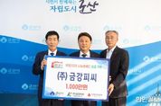 한민일보 서울포커스 김용택 기자 | 군산시는 ㈜금강피씨가 5일 ‘희망2026 나눔캠페인’에 동참하며 어려운 이웃들을 위해 성금 1,000만 원을 전달했다고 밝혔다. 서수면에 위치한 ㈜금강피씨는 암거 등 콘크리트 구조물 개발·생산 전문 기업이다. 특히 ESG 경영 실천의 하나로 2019년부터 꾸준한 기부를 이어오며 누적 1억 원 이상을 기탁해 사랑의 열매 전북16호 ‘나눔명문기업’으로 선정되는 등 지역 나눔문화 확산에 앞장서고 있다. 기탁식에 참석한 서상준 대표는 “한 해를 마무리하며 지역사회에 작게나마 도움이 될 수 있어 뜻깊게 생각한다.”라며 “앞으로도 사회적 책임을 실천하고 지역과 함께 성장하는 기업이 되도록 더욱 노력하겠다.”라고 말했다. 강임준 군산시장은 “매년 지속적인 나눔을 실천해 주는 ㈜금강피씨에 깊이 감사드린다.”라며 “소중한 성금은 동절기 도움이 꼭 필요한 가정에 신속하고 투명하게 전달하겠다.”라고 밝혔다. 한편 군산시는 ‘행복을 더하는 기부, 기부로 바꾸는 전북’을 슬로건으로 12월 1일부터 내년 1월 31일까지 ‘희망2026 나눔캠페인’을 전개해 연말연시 어려운 이웃