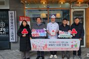 한민일보 서울포커스 김윤이 기자 | 세종특별자치시 보람동지역사회보장협의체(공동위원장 허인강·신현교)가 6일 이가옥 뼈 해장국(대표 이형진)에 착한가게 26호 현판을 전달했다. 착한가게는 사회복지공동모금회가 소상공인, 자영업자를 대상으로 시행 중인 기부 홍보활동으로, 매달 3만 원 이상 정기적인 기부로 나눔을 실천하는 가게다. 기부금은 보람동지역사회보장협의체 특화사업 등으로 지역 저소득 가구 지원 사업에 활용될 예정이다. 이형진 이가옥 뼈 해장국 대표는 “작은 정성이지만 도움이 필요한 이웃들에게 위로가 되길 바란다”고 말했다. 허인강 동장은 “새해에도 이어지는 훈훈한 나눔이 보람동을 더욱 따뜻하게 하고 있다”며 “선한 나눔이 더욱 확산될 수 있도록 최선을 다하겠다”고 전했다.