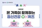한민일보 서울포커스 김윤이 기자 | 부천시는 부천시정신건강복지센터와 함께 3월 16일부터 3월 20일까지 ‘제25회 온 가족이 함께하는 정신건강 OX퀴즈’를 진행한다. 이번 행사는 온라인 퀴즈 형식으로 진행한다. 시민이 쉽고 재미있게 참여할 수 있도록 구성했으며, 정신건강에 대한 이해를 높이고 마음 건강의 중요성을 알리는 데 목적을 둔다. 또한 정신질환에 대한 편견을 줄이고 정신건강에 대한 긍정적인 인식을 확산하기 위해 마련됐다. 행사 이벤트 기간 중 매일 50명을 추첨하고, 전날 참여자 가운데 12명을 추가로 선정해 총 262명에게 소정의 상품을 제공한다. 당첨자는 3월 24일 부천시정신건강복지센터 홈페이지를 통해 확인할 수 있다. 참여를 원하는 시민은 부천시정신건강복지센터 홈페이지 ‘참여마당-이벤트’에서 매일 새롭게 제시되는 정신건강 주제의 OX퀴즈에 참여하면 된다. 정답을 댓글로 작성하면 자동으로 참여 처리되며, 문제와 함께 정신건강 관련 설명도 확인할 수 있다. 송정원 부천시보건소장은 “따뜻한 봄을 맞아 시민들이 마음 건강을 돌아보는 계기가 되길 바란다”며 “온 가족이 함께 참여해 정신건강에