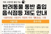 한민일보 서울포커스 김은금 기자 | 사천시는 지역 내 일반음식점·휴게음식점·제과점을 대상으로 반려동물 동반 출입 음식점을 신청받아 운영할 예정이다. ‘반려동물 동반 출입 음식점’은 식품위생법 시행규칙 개정에 따라 2026년 3월 1일부터 시행되는 제도이다. 이에 따라 반려동물 출입이 가능한 음식점은 시설기준과 준수사항을 갖춰 영업을 개시해야 한다. ‘반려동물 동반 출입 음식점’을 하려는 영업자는 ‘반려동물 동반 영업장’이라는 표시를 하여야 하며, 반려동물이 식품취급시설(조리장 등)에 접근을 하지 못하도록 시설을 갖추어야 한다. 반려동물은 개와 고양이로 한정된다. 또한, 위생관리를 위하여 음식 제공시에는 뚜껑이나 덮개를 사용하거나 비치하여야 하며, 반려동물 전용 쓰레기통을 비치하여야 한다. ‘반려동물 동반 출입 음식점’ 운영을 시작하기 전에, 사전검토 신청서와 체크리스트를 사천시청 보건위생과에 제출한 뒤 현장 점검을 통과해야 영업을 개시할 수 있다. 다만 기존에 영업신고 된 업소는 2월 27일까지 관련 서식을 반드시 제출하여야 한다. 자세한 사항과