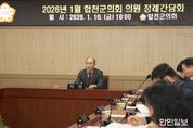 한민일보 서울포커스 김은금 기자 | 합천군의회는 지난 16일, 합천군의회 간담회장에서 병오년 새해 첫 번째 합천군의회 의원 정례간담회를 개최했다고 전했다. 군의원 및 국장· 소장 · 담당관과 관계 부서장 등 20여명이 참석한 이 날 간담회에서는 통합돌봄 TF 구성·운영, 2026년 열린 관광지 조성사업 공모사업 선정 등 향후 주요 군정 추진현황에 관한 부서장의 보고와 함께 제296회 합천군의회 임시회 운영과 2025 회계연도 세입세출결산 검사위원 선임을 위한 협의 등을 논의했다고 관계자는 밝혔다. 이날 정례간담회에서 정봉훈 의장은 “전 의원과 공직자께서는 병오년 새해, 군민을 위한 의정과 군정 실현을 위해 ‘2026년도 군민과의 대화’의 업무추진에 만전을 기하여, 군민이 더욱 살기 좋은 합천군으로 이끌어 주실 것을 당부한다.”고 전했다. 한편 합천군의회는 2025회계연도 세입세출예산 결산검사위원의 선임과 각종 조례안 동의안 등의 심의 · 의결 등을 위하여 오는 2월 5일부터 2월 10일까지 6일간의 일정으로 제296회 합천군의회 임시회를 개회할 예정이다.
