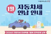 한민일보 서울포커스 김은금 기자 | 고양특례시 일산서구는 지방세를 조기에 확보하고 납세자의 세금 부담을 완화하기 위해 2026년 자동차세 연납 신청기간을 1월 16일부터 2월 2일까지 운영한다고 밝혔다. 이에 구는 전년도 자동차세를 연납한 차량을 대상으로 약 3만 7천여 건의 자동차세 연납 납부서를 발송해, 납세자가 별도의 신청 없이도 연납 제도를 이용할 수 있도록 안내하고 있다. 자동차세 연납제도는 매년 6월과 12월 과세기준일에 부과되는 자동차세를 미리 납부할 경우, 연세액 납부 기한의 다음 날부터 12월 31일까지 자동차세의 5%(연세액 기준 약 4.57%)를 공제받을 수 있는 제도다. 연납 신청은 3월, 6월, 9월에도 가능하지만, 1월에 신청할 경우 세금 절감 혜택이 가장 크다. 연납을 희망하는 납세자는 자동차 등록지 관할 세무과에 전화로 신청하거나, 지방세입 자동응답서비스(ARS ☎1422-11) 또는 위택스(1월 16일부터 가능)를 통해 신청할 수 있다. 납부는 현금자동입출금기(CD/ATM), 위택스 전용 가상계좌, 지방세입 계좌 등을 통해 가능하며, 자동이체는 적용되지 않