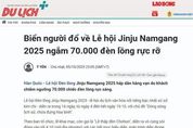 한민일보 서울포커스 김은금 기자 | 진주시가 지난 4일부터 19일까지 진주성 및 남강 일원에서 개최하는‘2025 진주남강유등축제’가 베트남 주요 언론의 주목을 받으며, 해외 언론의 뜨거운 관심 속에 진행되고 있다. 지난 10월 5일, 베트남 주요 방송사인 호찌민시티텔레비전(Ho Chi Minh City Television, HTV)에서도 축제 소식을 보도했으며, 베트남 국영방송 보이스 오브 베트남(VOV)과 유력 일간지 라오동(Lao Động)은 각각 '7만 개 이상의 등불이 밝히는 2025 진주남강유등축제', '7만 개의 찬란한 등을 보기 위해 수많은 인파가 2025 진주남강유등축제로 모여 들다!'라는 제목으로 관련 기사를 게재했다. VOV는 “진주남강유등축제가 ‘역사의 강, 평화를 담다’를 주제로 열리며 7만 개 이상의 유등이 남강과 진주성을 밝히고 있다”며, “임진왜란 당시 유등이 통신과 신호의 수단으로 사용된 역사적 의미를 오늘날 평화와 화합, 희망의 상징으로 발전시켰다”고 소개했다. 또한, 조규일 진주시장이 “유등이 진주를 세계적인 축제로 이끄는 핵심 요소”라고 강조한 발언도 함께 전했다. 라오동은 “