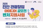 한민일보 서울포커스 박용남 기자 | (사)진안군관광협의회(이사장 이재동)가 지역 관광자원을 활용한 창의적인 아이디어를 발굴하고 실질적인 사업화를 지원하기 위해 ‘2026 진안 관광창업 아이디어 공모전’을 개최한다. 이번 공모전은 관광수요 창출과 수익화가 가능한 전 분야(관광상품·서비스, 체험 콘텐츠, 관광 시설 및 기술 등)를 대상으로 하며, 오는 5월 31일까지 접수를 진행한다. 공모는 ‘아이디어 부문’과 ‘창업 부문’ 2개 분야로 나뉘어 진행된다. ▲‘아이디어 부문’은 진안군 관광 활성화에 참신한 제안을 하고 싶은 누구나 참여할 수 있으며, ▲‘창업 부문’은 예비 창업자(선정 후 14일 이내 진안군 소재 등록 필수) 또는 진안군 소재 사업자 등록 만 3년 이내의 초기 창업자가 대상이다. 두 부문 간 중복 참여도 가능하다. 특히, 이번 공모전은 단순한 아이디어 발굴에 그치지 않고 선정된 팀에게 상금과 함께 5개월간의 밀착 벤처 지원 혜택을 제공하는 것이 특징이다. 맞춤형 컨설팅과 마케팅 지원을 통해 제안된 아이디어가 성공적인 지역 기반 비즈니스로 안착할 수 있도록 도울 것으로 전망된다. (사)진안