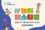 한민일보 서울포커스 박용남 기자 | 김제시는 아이들이 자유롭게 놀며 성장하는 아동친화도시 실현을 위해 오는 15일, 김제실내체육관 및 주차장 일대에서 와글와글 움직이는 놀이터,‘제2회 놀이페스티벌’행사를 개최한다고 밝혔다. 이번 행사는 아동친화도시 퍼포먼스를 시작으로, 어린이와 청소년, 부모, 조부모까지 전 세대가 함께 어울리는 즐거운 축제의 장으로 마련된다. 행사장에서는 ▲ 마술 및 버블 공연, ▲ 에어바운스 놀이터 등 다채로운 체험 프로그램이 준비돼 있으며, ▲ 대동놀이(단심줄놀이, 강강술래, 줄다리기), ▲ 김제형 딱지치기대회, ▲ 터널형 놀이마당(과거, 현재, 미래 놀이), ▲ 명랑운동회 등 전통 놀이를 통해 세대 간 협동과 화합의 즐거움을 나눌 수 있다. 특히, 영유아존은 부모와 아기가 함께하는 감성 놀이와, 눈처럼 반짝이는 미리 크리스마스 겨울왕국이 테마 체험이 운영돼 아이들에게 특별한 추억을 선사한다. 또한, 아동권리존에서는 아이들이 놀이를 통해 자신의 권리를 배우고 스스로의 생각을 표현할 수 있는 참여형 체험 프로그램이 진행된다. 최미화 교육가족과장은 “이번 놀이페스티벌은 아이들이 마
