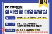 한민일보 서울포커스 박정민 기자 | 서울 강동구는 오는 12월 13일, 수험생들의 효율적인 정시 지원 전략 수립을 돕기 위한 ‘2026학년도 정시전형 대입상담실’을 운영한다고 13일 밝혔다. 이번 대입상담실은 정시 지원을 앞둔 수험생과 학부모를 대상으로, 2026학년도 대입 정시전형 관련 궁금증을 해소하고 개인별 맞춤형 대학·전공 지원 전략 수립을 지원하기 위해 마련됐다. 상담은 수능성적 통지 직후 주말인 12월 13일에 강동구 미래교육혁신센터에서 진행되며, 총 18개 상담 부스를 운영해 회당 40분간 심층 상담이 이뤄질 예정이다. 이를 통해 수험생과 학부모가 안정적으로 정시전형을 준비할 수 있도록 지원한다. 상담은 한국대학교육협의회 대입상담교사단 소속 교사들이 맡아 전문 대입 상담 프로그램을 활용, 정확하고 체계적인 상담 서비스를 제공한다. 참여 신청은 오는 11월 18일부터 통합교육포털 ‘강동 미래온’ 누리집(홈페이지)을 통해 온라인으로 할 수 있으며, 선착순으로 접수받는다. 이수희 강동구청장은 “시기별‧개인별 맞춤 상담을 통해 수험생과 학부모님들이 체계적으로 정시 지원 전략을 세울