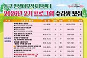 한민일보 서울포커스 백진욱 기자 | 인천 동구는 중장년층의 성공적인 노후 준비와 사회활동 재참여를 지원하기 위해‘2026년 2기 동구 인생이모작지원센터 프로그램’ 수강생을 모집한다고 밝혔다. 이번 프로그램은 취업·창직·창업 지원과 경력설계, 역량강화, 사회공헌, 생애설계, 친환경 야외체험을 아우르는 종합형 과정으로 구성됐으며, 총 17개 과정이 운영된다. 특히 남성 참여 활성화를 위해 일부 과정에 남성 우선 선발제를 도입하고, 근로 중인 중장년의 참여 확대를 위해 야간 과정도 함께 개설한다. 교육은 2026년 4월 1일~6월 30일까지 진행되며, 동구에 거주하는 40세~64세까지의 중장년을 대상으로 동구 인생이모작지원센터 (청본이룸터 1층)에서 실시된다. 취업·창직 분야에서는 에어컨 클리너와 배관세척 관리사 과정, 인공지능을 활용한 전자책 출판, 유튜브 1인 크리에이터, 블로그 수익화 과정 등을 운영해 새로운 직무와 수익 모델을 탐색할 수 있도록 지원한다. 이와 함께 ‘중장년 창업‧창직 스타터 과정’을 통해 소규모 맞춤형 교육과 개별 컨설팅을 연계하고, 사업 아이디어 구체화와 비즈니스