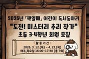 한민일보 서울포커스 유창렬 기자 | 인천광역시교육청주안도서관은 오는 23일부터 초등 3~4학년 학생을 대상으로 ‘책열매’ 독서동아리 회원을 모집한다. ‘도전! 미스터리 추리 작가’를 주제로 한 이번 프로그램은 어린이가 독서지도 전문 강사의 지도 아래 꾸준한 독서 습관을 기르고, 또래 친구들과 책으로 소통하는 경험을 쌓을 수 있도록 마련했다. 프로그램은 매주 미스터리 주제의 다양한 책을 읽고 수수께끼 만들기, 탐정일지 쓰기, 같은 시작 다른 결론, 뒷이야기 쓰기 등의 활동을 하며, 학생들이 직접 추리 동화를 창작하는 과정으로 3월 12일부터 4월 23일까지 운영한다. 모집은 2월 23일 오전 10시부터 주안도서관 누리집에서 선착순 진행하며, 자세한 내용은 주안도서관 누리집을 확인하거나 어린이자료실로 문의하면 된다.