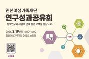 한민일보 서울포커스 유창렬 기자 | 인천여성가족재단은 오는 3월 19일 2층 소강당에서 연구성과공유회를 개최한다. 이번 연구성과공유회에서는 재단에서 지난 1년 동안 수행한 연구성과를 시민과 전문가, 관계기관 담당자들과 함께 나누며, 변화하는 사회환경에 발맞춰 향후 인천시 여성가족정책의 방향을 모색하고 연구와 사업의 환류 강화을 위한 자리로 마련된 행사이다. 이번 공유회는 2025년 연구과제에 관한 총괄적인 발표에 이어 재단에서 수행한 연구과제 중 사업 운영과 직접 관련되어 수행된 여성사회교육기관 운영 개선 관련 연구와 아이사랑꿈터 운영 개선 연구가 세부 발표로 기획됐다. 연구결과가 실제 여성정책 사업의 운영과 개선에 어떻게 더 실효성 있게 반영될 수 있을지를 관계자들이 모여서 함께 토론하기 위한 자리이다. 인천여성가족재단은 여성문화회관을 운영하고 있고 아이사랑꿈터 운영지원단을 비롯하여 여성의 사회참여와 돌봄지원을 위한 다양한 사업을 운영하고 있다. 연구과제가 실질적인 인천시의 여성가족 정책사업의 운영 개선으로 확장되고 환류되기 위한 과제가 무엇인지 짚어보고 이를 위해 필요한 관계자들의 소통 증진을 위한 자리로