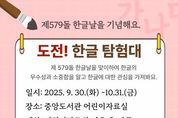 한민일보 서울포커스 유창렬 기자 | 인천광역시교육청중앙도서관은 제579돌 한글날을 맞아 9월 30일부터 10월 31일까지 어린이들이 즐겁게 한글을 배우고 도서관을 체험할 수 있는 특별행사 ‘도전! 한글 탐험대!’를 운영한다. 이번 행사는 어린이자료실에서 진행하며, 어린이들이 비치된 문제지를 풀며 한글의 독창성과 우수성을 체험할 수 있도록 준비했다. 문제는 어린이 눈높이에 맞춰 쉽고 재미있게 구성했으며, 3문제 이상을 맞히면 소정의 기념품을 받을 수 있다. 자세한 사항은 중앙도서관 누리집 또는 어린이자료실로 문의하면 된다.