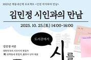 한민일보 서울포커스 유창렬 기자 | 인천광역시교육청계양도서관은 10월 25일 오후 2시 ‘책동네산책 프로젝트’의 일환으로 ‘김민정 시인과의 만남’을 개최한다. ‘도서관에서 시를 줍다’를 주제로 열리는 이번 프로그램에서 김민정 시인은 작품 세계와 시에 관한 다양한 이야기를 독자들과 나누며 문학적 공감을 형성할 예정이다. 김민정 시인은 1999년 『문예중앙』으로 등단해 시집 《날으는 고슴도치 아가씨》, 《아름답고 쓸모없기를》, 산문집 《각설하고,》, 《읽을, 거리》 등을 펴냈으며, 출판사 난다 대표와 ‘문학동네 시인선’ 편집자로서 활발한 활동을 이어오고 있다. 참여 신청은 10월 1일 오전 10시부터 계양도서관 누리집에서 선착순 가능하며, 자세한 사항은 누리집 공지사항을 확인하거나 독서문화과로 문의하면 된다.
