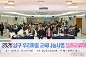 한민일보 서울포커스 임경복 기자 | 대구 남구는 지난 12월 10일, 구청 드림피아홀에서 동별 추진위원과 청소년 등 100여 명이 참석한 가운데 ‘2025년 남구 우리마을 교육나눔사업 성과교류회’를 개최했다. 대구 남구 우리마을 교육나눔사업은 이천동, 봉덕3동, 대명2동, 대명4동, 대명5동, 대명6동, 대명9동, 대명11동 총 8개 마을에서 참여하고 있으며, 동별 추진위원회를 중심으로 동 행정복지센터, 학교 등 유관기관과 교육협력 네트워크를 구축하여 다양한 프로그램을 진행하며 마을 청소년 육성·보호에 앞장서고 있다. 이번 성과교류회는 지난 1년 간의 우리마을 교육나눔사업 추진실적과 각 마을별 활동 프로그램 공유, 유공 추진위원 8명 및 청소년 8명에 대한 표창장 수여, 공예체험 등의 순서로 진행됐으며, 특히 대명6동 청소년들의 복타공연과 대명5동 청소년들의 기타연주 공연으로 더욱 풍성하고 뜻깊은 교류의 장이 됐다. 조재구 남구청장은 “ ‘삶의 과정이 곧 교육의 과정’이라는 말처럼 생활 현장인 마을이 청소년의 보호와 육성 등 교육의 터전”이라며, “마을 전체가 청소년들의 건전한 성장을 위한 배움터가 될 수 있