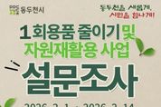 한민일보 서울포커스 임경복 기자 | 동두천시는 깨끗한 도시환경 조성을 위해 추진 중인 '1회용품 줄이기 및 자원 재활용 사업'의 기초자료로 활용하고자 시민 설문을 실시한다. 이번 설문은 동두천시민이면 누구나 참여할 수 있도록 개인정보 수집, 회원 등록, 로그인 등 별도 절차를 생략하고, 링크 또는 QR코드를 통해 바로 참여할 수 있게 구성했다. 참여 방법은 네이버 설문 링크 링크, 또는 QR코드를 이용하면 되며, 설문은 총 10개 문항으로 이뤄져 있다. 시 관계자는 “10대부터 어르신까지 다양한 시민의 의견을 폭넓게 듣기 위해 시 SNS와 관련 단체를 통해 설문 링크를 공유하고 있다”라며 “설문을 안내받은 시민들도 가족과 지인에게 공유해 참여를 독려해 달라”라고 밝혔다. 박형덕 동두천시장은 “이번 설문 참여와 함께 가정·직장·학교 등 일상에서 1회용품 사용을 줄이고 자원을 재활용하는 실천에 동참해 주시길 바란다”라며 “시는 설문 결과를 바탕으로 관련 사업을 적극 추진하겠다”라고 말했다.