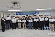 한민일보 서울포커스 임광현 기자 | 부산 중구는 2025년 10월 24일 오후 4시 중구 청년마루에서 선박화물 검수원 양성사업 3기 훈련생 19명이 수료식을 마쳤다고 밝혔다. 아울러, 오는 28일부터 ‘㈜미성에스엔피’, ‘(합자)신양선박대행사’ 의 입사 면접이 예정되어 있어 3기 훈련생들은 선박화물 검수원으로 새롭게 도약할 예정이다. 중구청 관계자는 “올해 준비한 선박화물 검수원 양성교육 프로그램들이 모두 마무리 됐고, 3기 훈련생들에게도 앞날에 조금이나마 보탬이 됐으면 한다”며, “이번 수료식이 끝이 아니라 훈련생들 인생의 새로운 시작이었으면 한다”고 3기 수료생들을 응원했다.