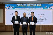 한민일보 서울포커스 임철현 기자 | 영암군에 534억원 투자, 140명 고용 규모의 2개 수산식품 기업이 들어선다. 24일 전라남도청에서 전라남도와 영암군이, ㈜해진수산, ㈜해진식품과 투자협약을 체결하고 협력을 약속했다. 이날 협약에 따라 ㈜해진수산은 332억원을 투자해 영암군 삼호읍에 마른김 생산시설을 조성하고, 80여 명을 고용할 예정이다. ㈜해진식품도 같은 지역에 202억원을 투자해 조미김 생산시설을 구축하고 60여 명의 일자리를 창출할 계획이다. 영암군은 인·허가 신속 처리, 기반시설 확충 등 행정 지원으로 이번 협약을 뒷받침하고, 지역·기업 상생모델로 지역경제 활성화를 견인한다는 방침이다. 이날 투자협약에는 두 기업의 임한택 대표, 김영록 전라남도지사, 윤재광 영암군부군수 등이 함께 했다.