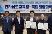 한민일보 서울포커스 임철현 기자 | 전라남도교육청과 국립해양과학관은 15일 전남교육청에서 ‘미래 해양 인재 양성 및 해양 과학교육 활성화’를 위한 업무협약을 체결했다. 이번 협약은 해양 소양 증진과 교육 프로그램 개발로 지역 학생들에게 해양과학 진로 탐색 기회를 제공하고, 미래 해양 전문 인력을 육성하기 위해 추진됐다. 양 기관은 협약에 따라 ▲ 해양과학 관련 교육프로그램 개발 ▲ 교원 연수 ▲ 현장체험학습 연계 운영을 비롯한 인적자원 교류 및 네트워크 구축 등 다양한 협력사업을 추진할 계획이다. 특히, 학생들에게 독도교육과 동해안 중심의 해양 교육으로 진로 탐색의 기회를 넓히고, 내실 있는 해양과학교육을 운영할 방침이다. 전남교육청은 이번 협약을 계기로 미래 교육역량 강화를 위한 협력 체제 및 지속 가능한 지원 기반을 구축할 수 있을 것으로 기대하고 있다. 김대중 교육감은 “전남은 우리나라의 대표적인 해양 지역으로, 해양 교육은 지역과 미래를 동시에 준비하는 길”이라며 “국립해양과학관과의 협력을 통해 전남 학생들이 글로벌 해양 인재로 성장할 수 있도록 적극 지원하겠다”고 말했다.