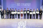 한민일보 서울포커스 진광성 기자 | 수원특례시는 10월 30일 정조테마공연장에서 2025 수원디자인대상 시상식을 열고, 다니엘열방학교 등 5개 작품을 시상했다. 수상작은 건축물 분야 다니엘열방학교(영통구 원천동)·원더풀 우만(팔달구 우만동), 인테리어 분야 수원 지관서가(팔달구 우만동), 공공공간 분야 영흥숲공원(영통구 영통동)이다. 복합문화공간 111CM는 공공공간 분야 특별상(한국디자인단체총연합회장)을 받았다. 수원시가 주최·주관하고 (사)한국디자인단체총연합회가 후원하는 ‘수원디자인대상’은 디자인 자산을 확보하고, 문화가치를 창출하기 위해 우수한 디자인을 선정해 시상하는 것이다. 전문가로 구성된 작품 심사위원회가 수상작을 선정했다. 이날 시상식은 2025 수원도시건축문화제 행사 중 하나로 진행됐다. 수원시는 10월 29일부터 11월 1일까지 정조테마공연장, 수원시미디어센터, 팔달문화센터 등에서 ‘Grayfield; 회색공간’를 주제로 2025 수원도시건축문화제를 연다. 시상식 후 ‘도시의 여백, 가능성을 설계하다’를 주제로 열린 토크콘서트는 홍경구(단국대 건축학부 교수) 수원시 총괄계획가의 기조